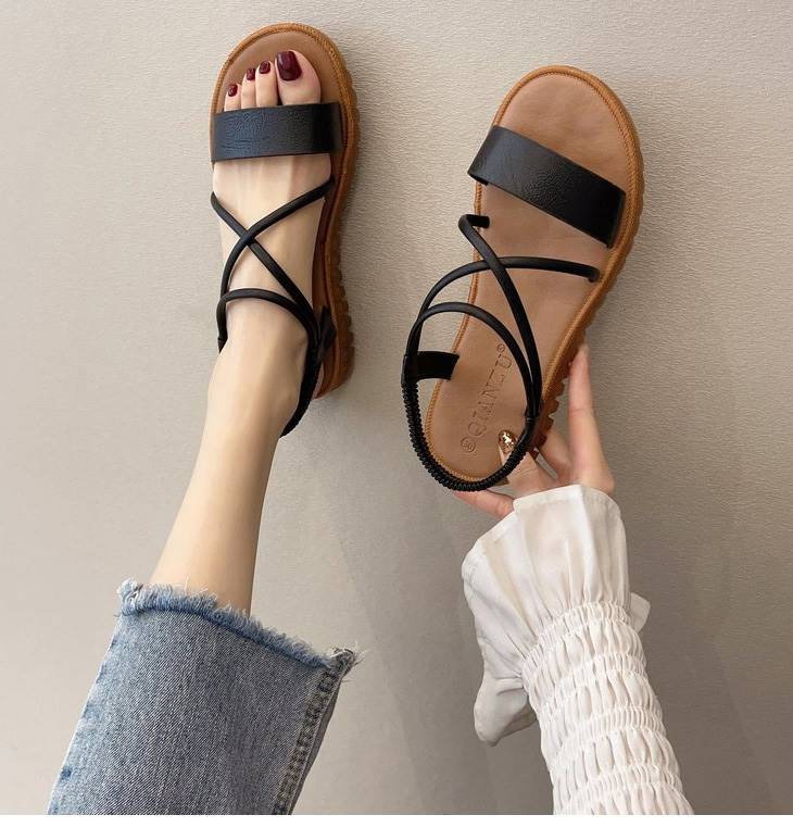 クロスストラップフラットサンダル ぺたんこ ローヒール サンダル クロスストラップ デザイン リラクシー リラックスカジュアル スポーティ レースアップ 無地 シンプル【k3-zl8】【予約販売:15-20日】【送料無料】メ込