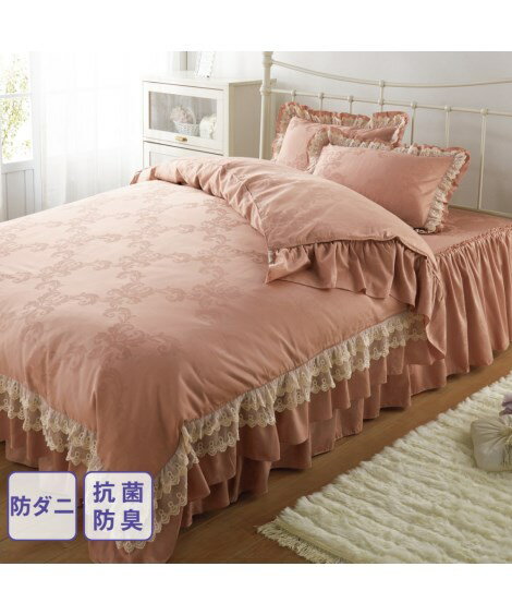 掛け布団 カバー 綿100% 防ダニ・ 抗菌防臭 フリル付綿サテンダ マスク 柄掛 年中 布団 ピンクグレー/ブルーグレー/ラベンダー/白 セミダブル ニッセン