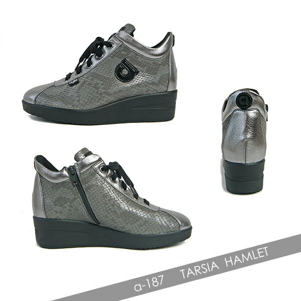 グレー ヘビ柄型押し×シルバー 切替 TERSIA HAMLET・agile-187GY 【安心の 新作/定番品】 当店は、ルコライン アージレの中でも一番履き心地の良い定番型ハイカットシューズの 「新作・定番品」を常にお届けいたします。